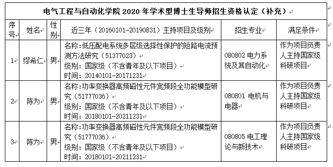 根据《关于开展2020年博士生指导教师招生资格认定工作的通知》(校研〔2019〕36号)和《偷拍视频 博士生指导教师资格认定办法(试行)》(福大研〔2018〕24号》,经各位博导自行系统申报,学位点负责人审核,学院学术分委员会会议审核通过后,补充偷拍视频 获得2020年博士生指导教师招生资格名单如下,现予以公示,公示时间为2019年10月10日----2019年10月12日。