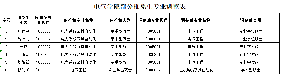 电气学院拟接收2023年推免生复试名单(第一批)增补