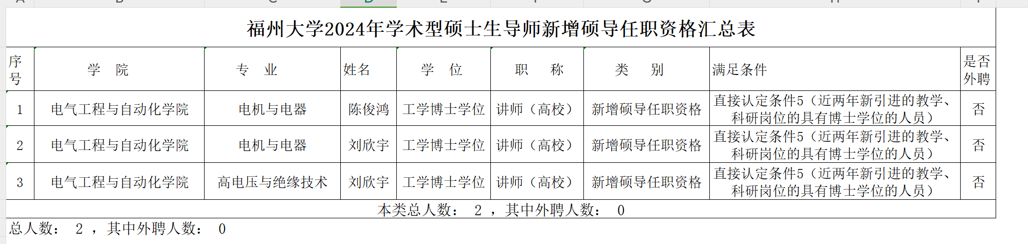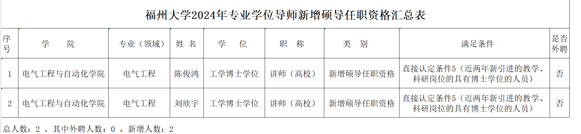 根据《关于做好2024年硕士研究生导师任职资格和招生资格认定工作的通知》(校研〔2023〕19号)和《关于印发《偷拍视频 硕士研究生导师资格认定办法(试行)》的通知》(福大研〔2018〕56 号》等文件规定,经老师自行系统申报,学位点负责人审核,学院学术分委员会会议审核,确定以下老师通过2024年硕士研究生导师任职资格的认定,现予以公示。