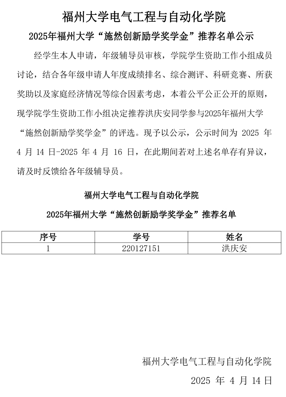 偷拍视频 2025年偷拍视频 “施然创新励学奖学金”推荐名单公示