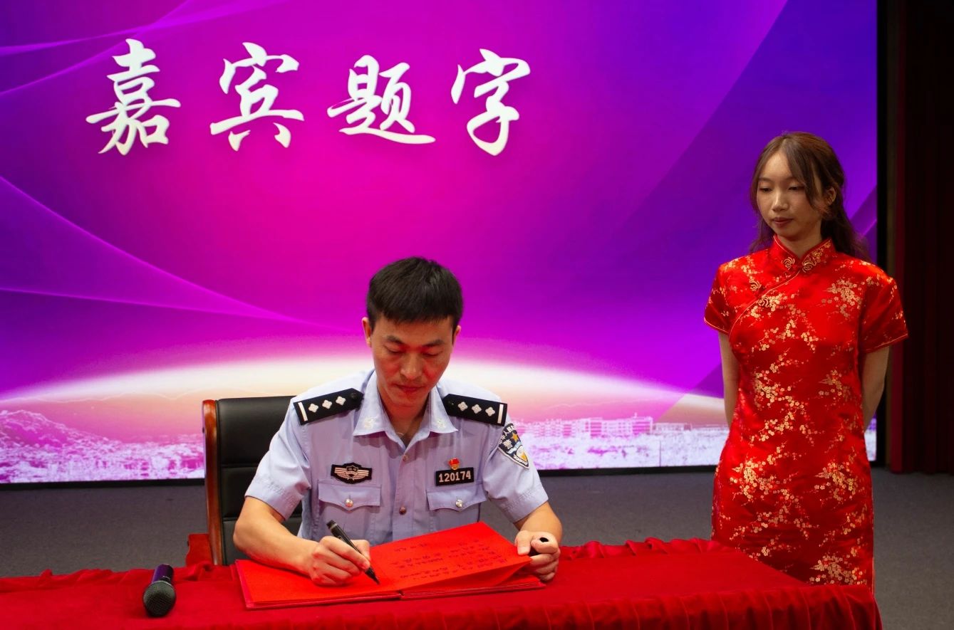 讲座结束后,李金土老师为罗军队长颁发嘉宾证书,学生代表为罗军队长献花,罗军队长也为“工匠讲坛”留下珍贵的墨宝。