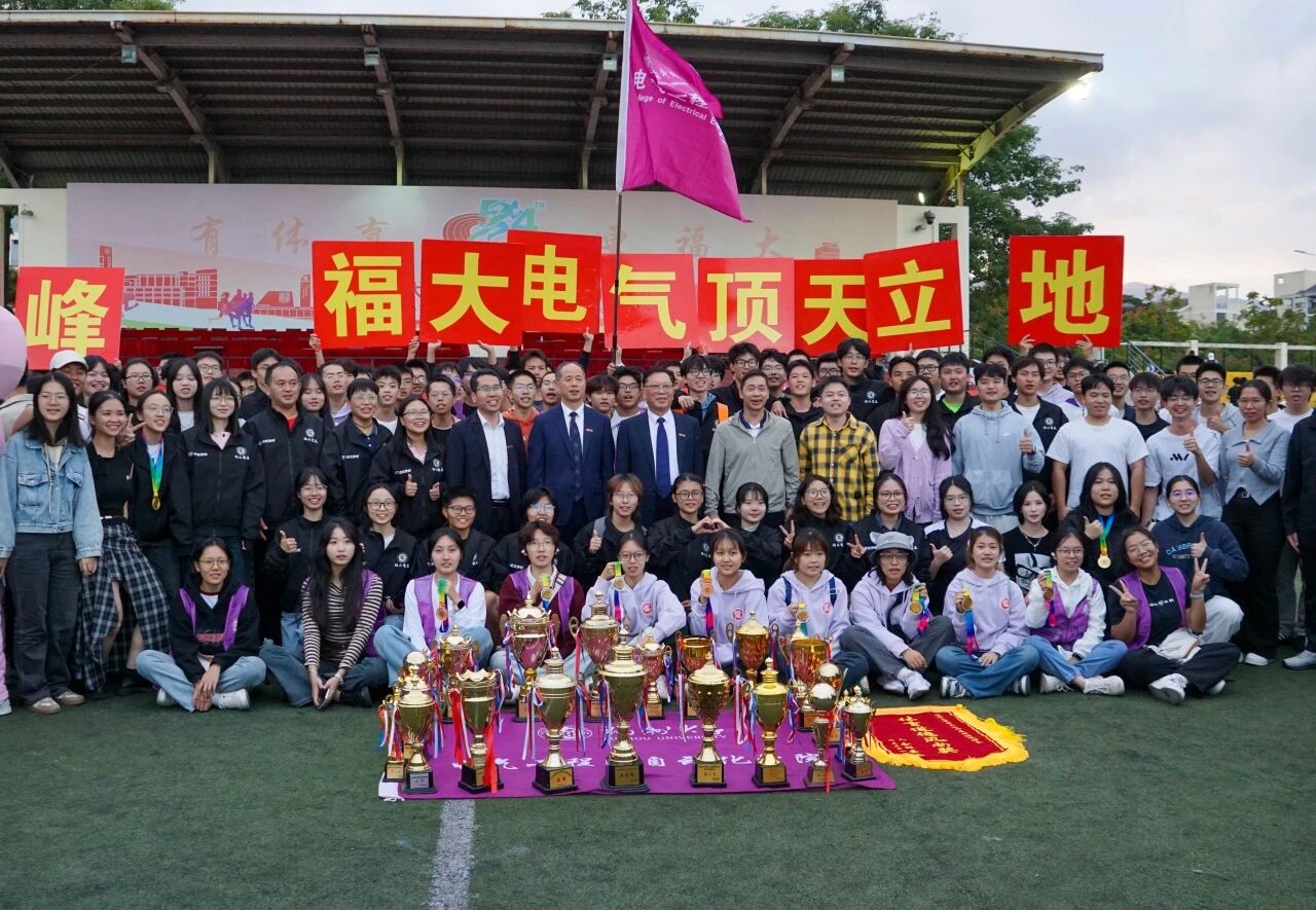 他赞扬了全体运动健儿在赛场上展现的拼搏精神与团队凝聚力;对校党委的正确领导、体育部和校部机关的关心、兄弟学院的陪伴以及厦门宏发校友企业的慷慨支持表示衷心的感谢;回顾学院体育育人发展历史,杜领军副书记向大家分享了学院体育育人的成果与心得,寄语大家“继续传承和发扬‘无体育,不电气’的精神,将其转化为推动学院发展的强大动力,为学校‘有体育,更福大’的文化底色注入新的活力、增添新的色彩!”。