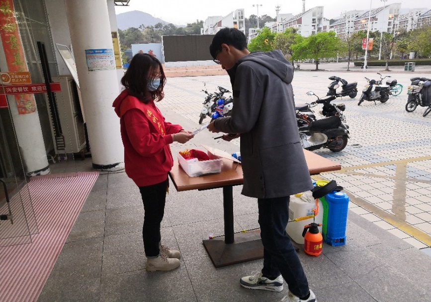 在丁香园,总是能看到志愿者们忙碌的身影,提醒同学佩戴口罩、在餐厅内来回巡视、协助餐厅工作人员,保障了同学们的饮食安全。在用餐高峰期,志愿者们主动维持食堂秩序,组织引导同学们排队打饭,不插队、不拥挤、不混乱,使食堂秩序进行得井井有条。志愿者们还不忘提醒同学们要爱惜粮食、节约粮食,做一个“光盘福大人”。