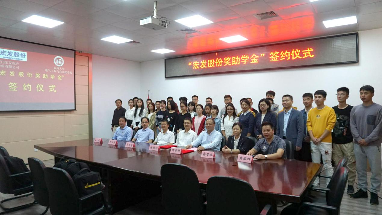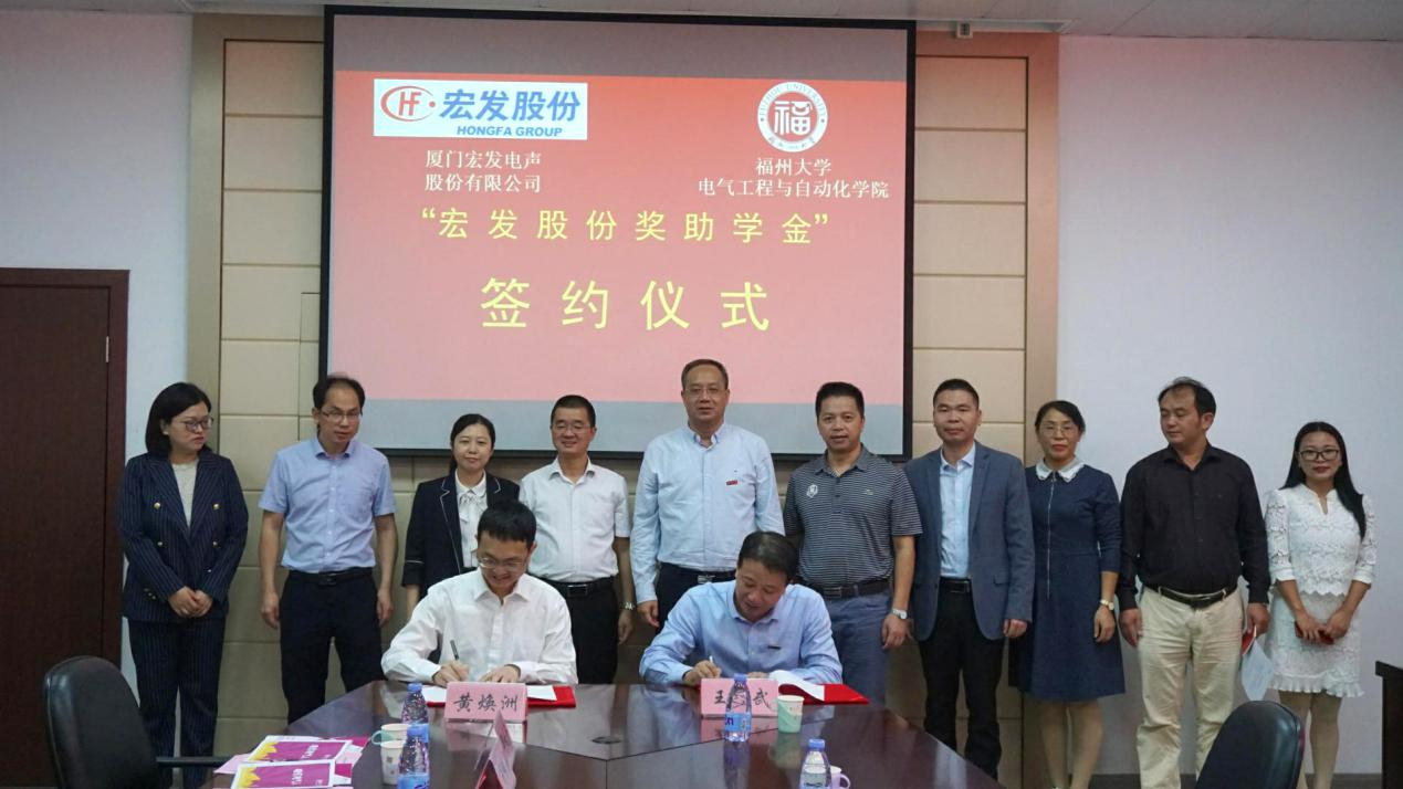与厦门宏发电声股份有限公司在学院南212会议室成功举行了“宏发股份奖助学金”签约仪式。