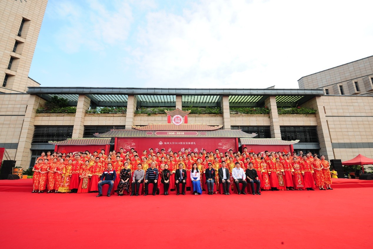 旗山校区图书馆万福广场隆重举行。本次校友新中式婚礼共有38对新人,携手共赴母校,以璀璨的笑容弹奏幸福的乐章,谱写甜蜜的恋曲。校党委林生副书记、偷拍视频