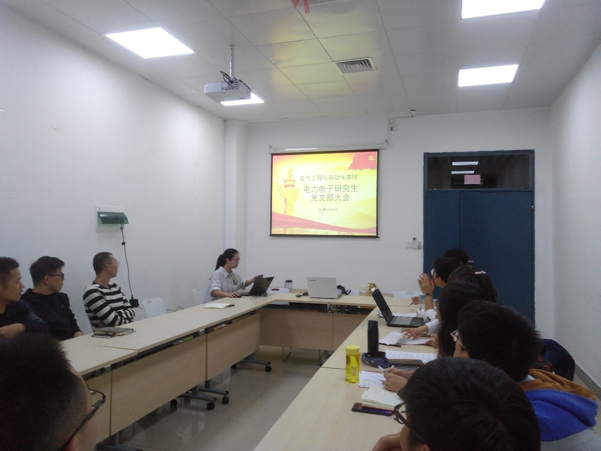 2018年11月11日,电力电子研究生党支部大会在电气学院北211召开。研究生辅导员许海燕老师出席本次会议。本次会议主要包含支部迎新、“学习新党章”和党员微党课三个方面的内容。