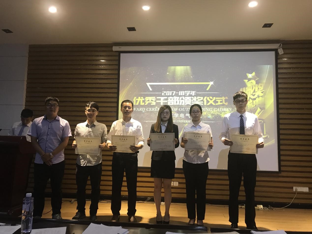 获得“优秀党员干部”荣誉称号的有:电机与电器党支部肖庆豪、自动化党支部李晓倩。