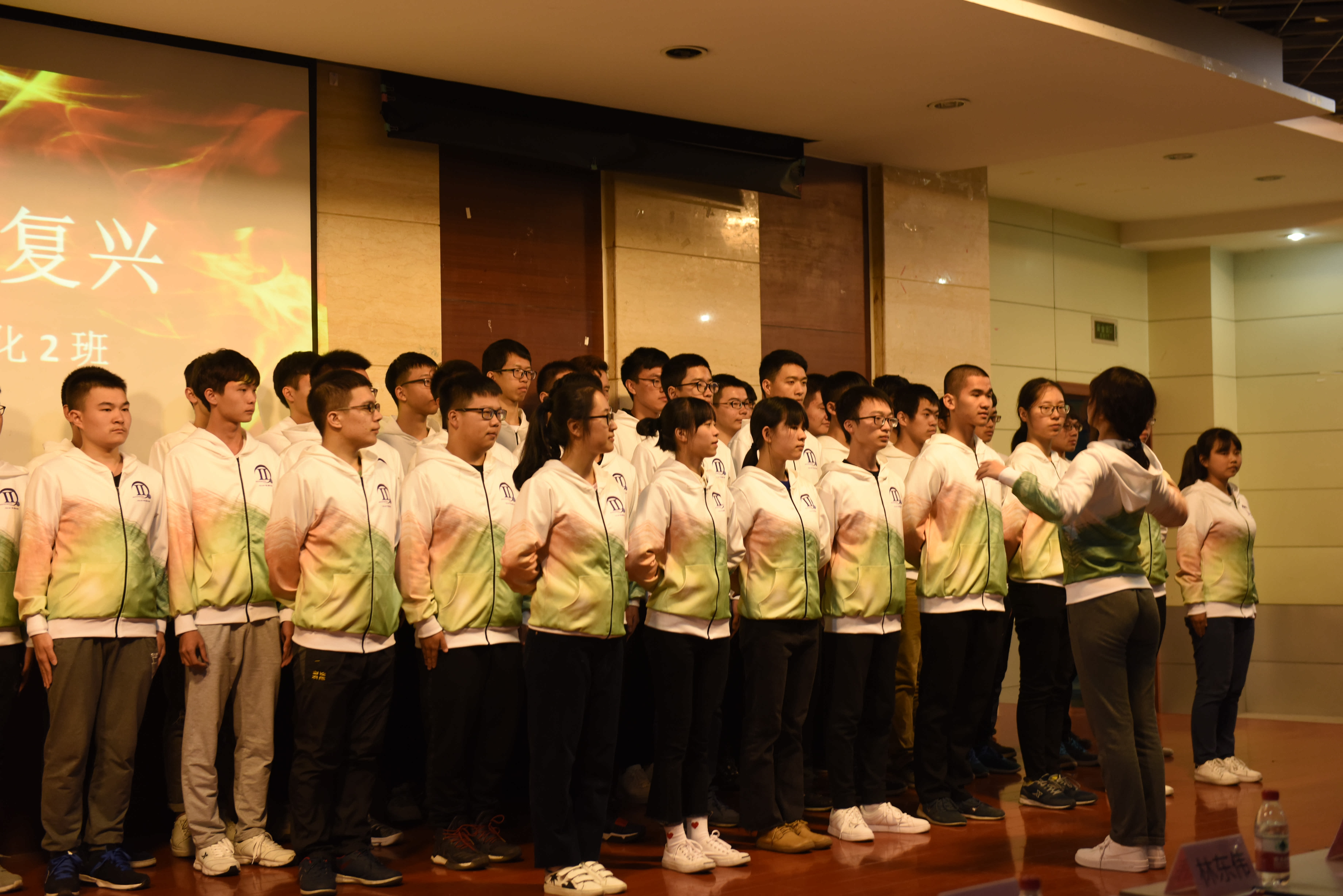 首先出场的是电气五班,他们的《我的中国心》表达了对祖国母亲的不解的情怀和依恋;然后建电一班演唱了激励我们前进、唱响五湖四海的《学习雷锋好榜样》;电气二班演唱《歌唱祖国》为祖国献上真诚的心愿和祝福;电气三班演唱的《中国军魂》表现出热血青年的爱国豪情;电气一班演唱了《国家》——国是一个家;自动化一班演唱了《强军战歌》,歌声慷慨激昂;电气六班演唱了《没有共产党就没有新中国》,歌唱伟大、光荣的共产党;自动化二班以嘹亮的歌声,与祖国一起《走向复兴》;最后是电气四班的《明天会更好》,他们用歌声拥抱明天的梦。在220这个温馨且庄重的舞台上,耳熟能详的爱国歌曲,军训中时常响起的旋律与歌词,由着装整齐、精神饱满的同学们配合着优秀的指挥唱出,加上朗诵和手语等形式,显得格外大气、震撼心灵,在场掌声不断。