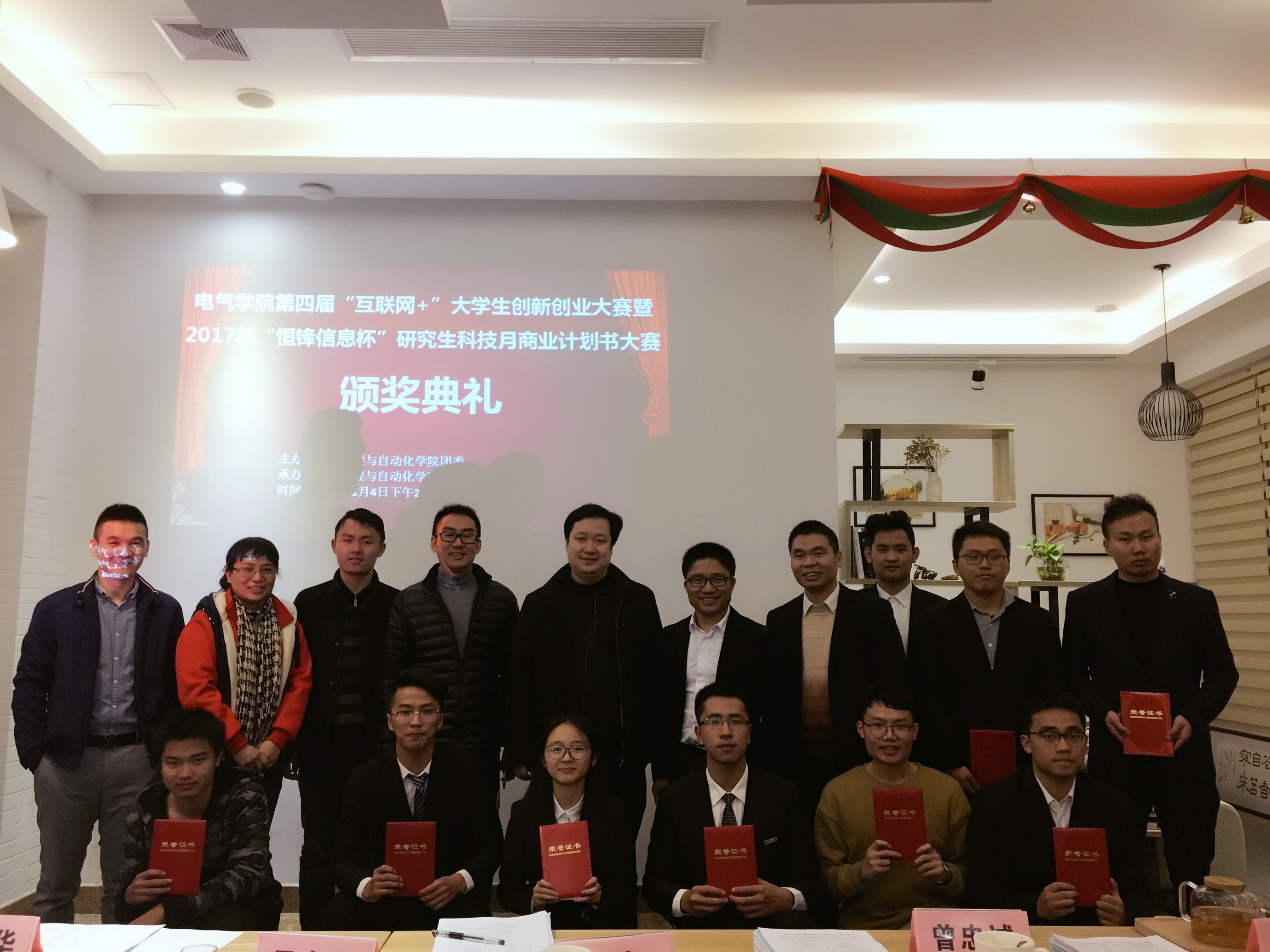 咖啡厅举行了电气学院第四届“互联网+”大学生创新创业赛暨“恒锋信息杯”研究生科技月商业计划书决赛。出席本次比赛的评委有鸿腾电子公司总经理郭昌华、福建奥通迈胜电力科技有限公司总经理吴孝彬、新东网科技有限公司总裁曾忠诚、福建省众创空间协会会长陈秀斌以及偷拍视频