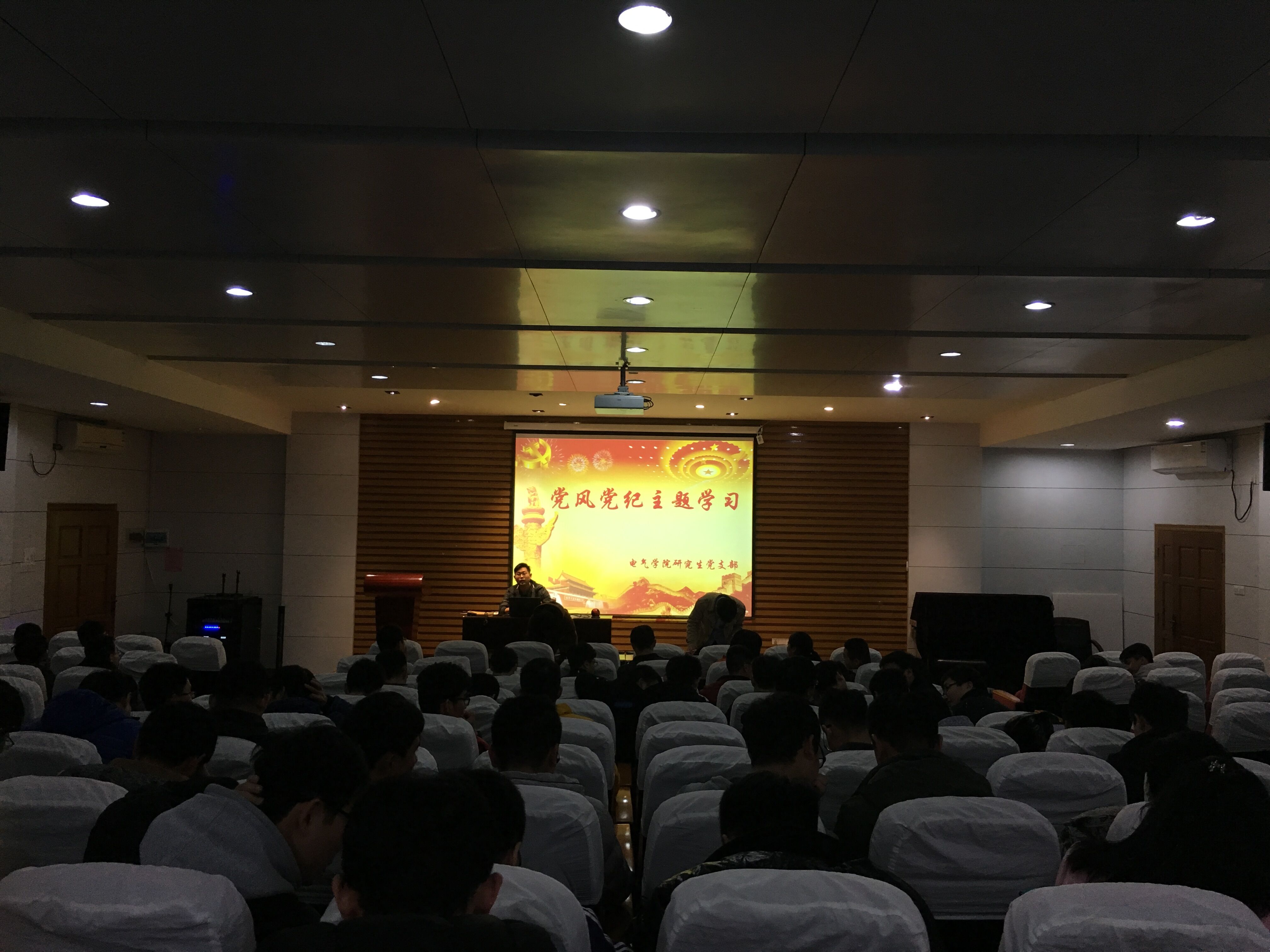 为了提高党员党性修养,树立正确的党风党纪意识。电气学院各研究生党支部于1月8日下午在电气学院楼北230召开“党风党纪主题教育”的支部大会。本次会议由电机电器研究生党支部书记黄李威主持。会议由以下三部分组成:首先在黄李威同志带领大家一起学习《中国共产党党务公开条例(试行)》,接着全体党员一同观看中央反腐纪录片《巡视利剑》,最后各位党员同志交流学习心得。