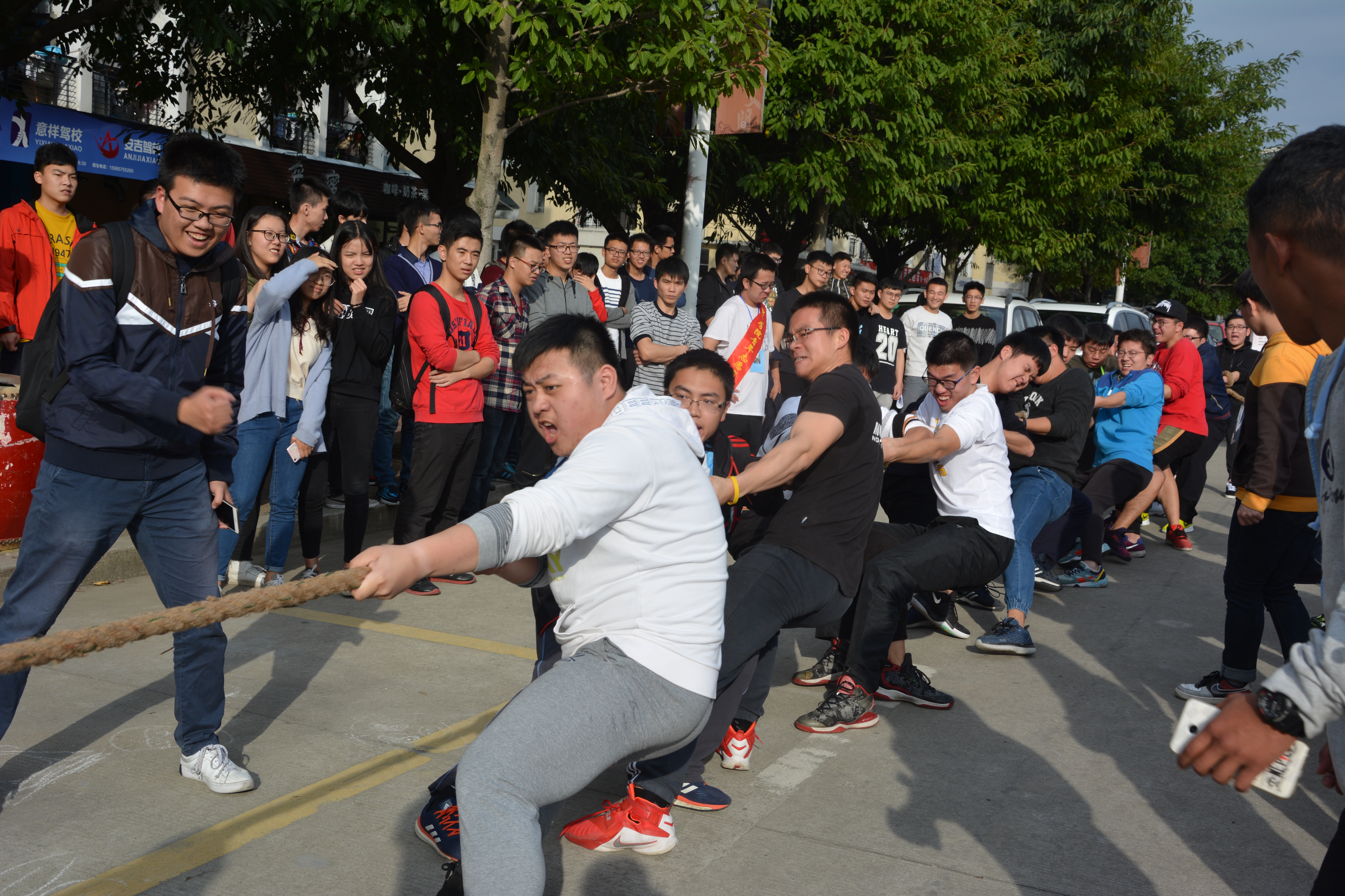 本次比赛分为男子组和女子组两大类,每类别各有四支参赛队伍,他们分别来自2017级本科生代表队、2016级本科生代表队、2015级本科生代表队、2014级本科生代表队以及研究生代表队,每支参赛队伍规定人数为15人。比赛实行淘汰晋级制度,抽签分组决定比赛顺序。随着“咚咚咚”鼓声的响起,参赛选手和裁判员准备就绪,一场气势浩荡的拔河比赛正式开始。