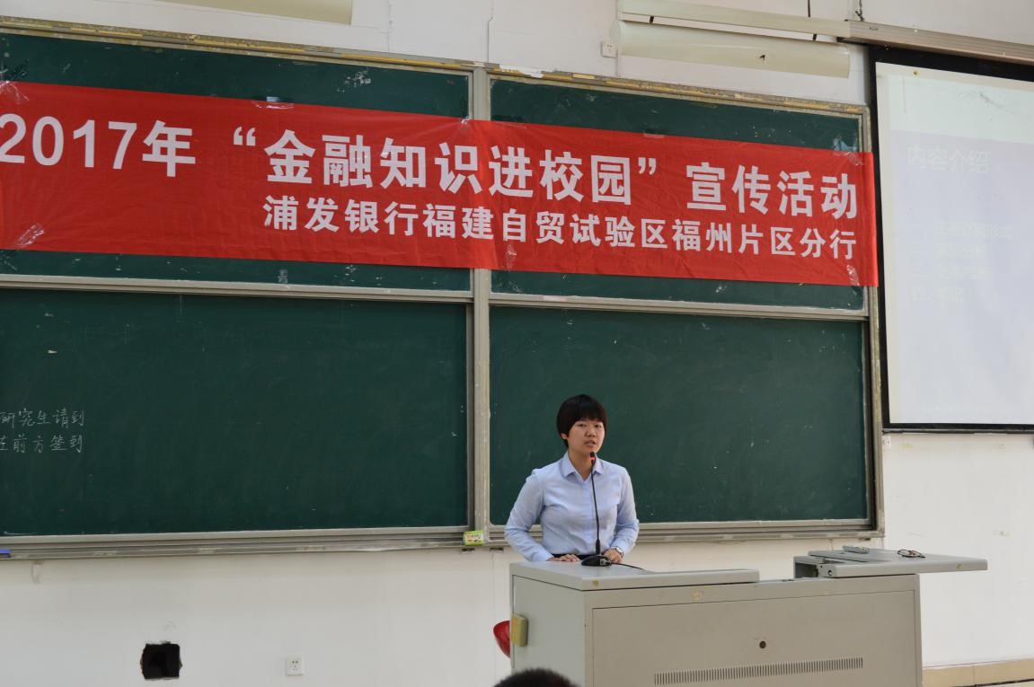 随着经济的快速发展,金融诈骗的方式也层出不穷,尚未步入社会的学生缺乏社会经验,很容易受骗上当。为了防范金融诈骗,传授金融知识,电气学院请来了浦发银行福建自贸试验区福州片区分行的行助和内训师,在2017年11月2日的下午举办了“金融知识进校园”讲座,讲座由研究生辅导员许海燕老师主持,院党委副书记黄国辉老师出席讲座报告。