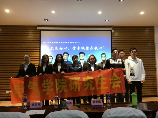 在新楚楼北230举行研究生学习十九大系列活动—“不忘初心,学术诚信在我心”主题演讲比赛。出席本次活动的嘉宾有我院研究生辅导员许海燕老师、电机电器研究生党支部书记黄李威同学以及曾在校演讲比赛中表现优异的陈韬珉同学。比赛由2017级硕士研究生黄炎尧主持。