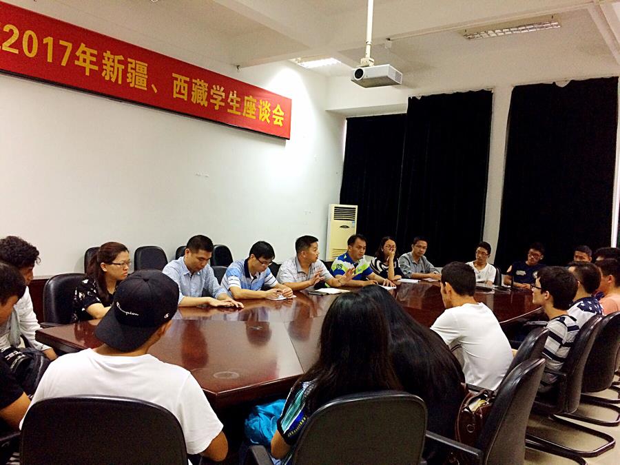 在新楚楼南212会议室召开了新疆、西藏学生座谈会。学院党委副书记黄国辉老师、全体辅导员参加会议。学院所有新疆、西藏籍学生提前到会,认真聆听,深入交流。