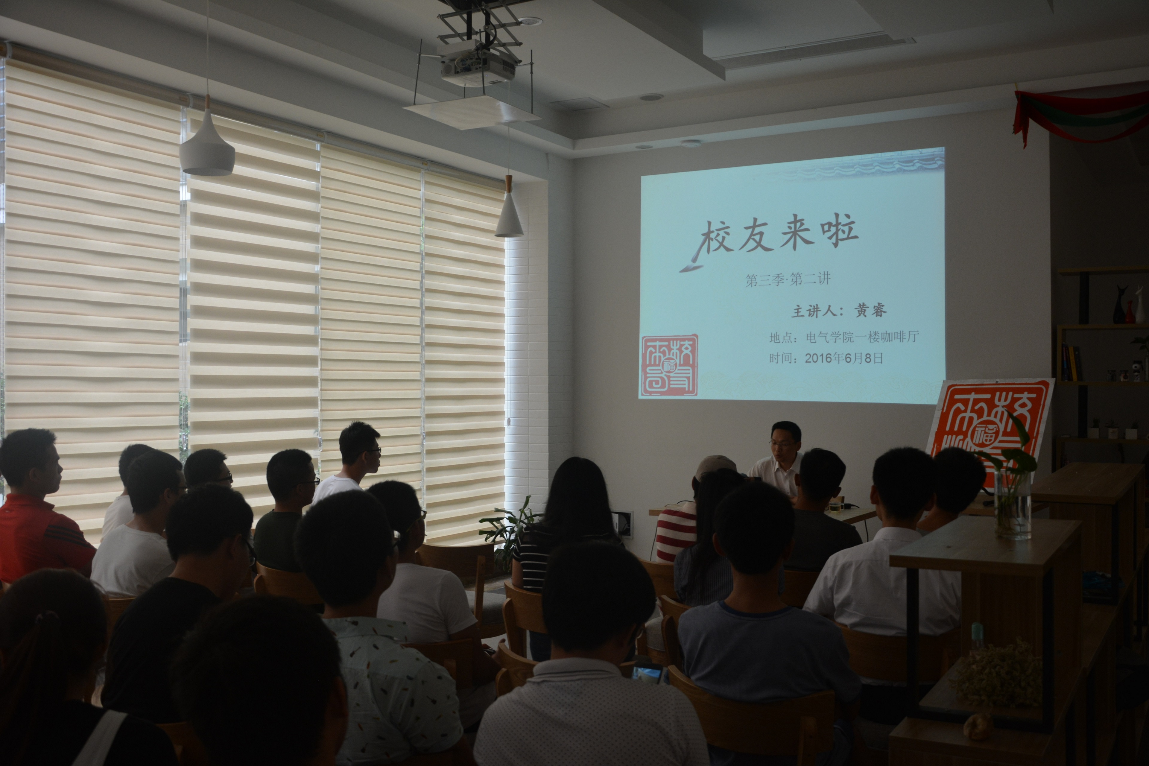 2016年6月8日下午3点,电气学院校友来了系列讲座第三季第二讲在新楚楼一楼咖啡厅成功举办。此次讲座邀请了校友黄睿先生作主讲人。黄睿先生现任国网福建省电力有限公司调度中心设备监控管理处副处长。