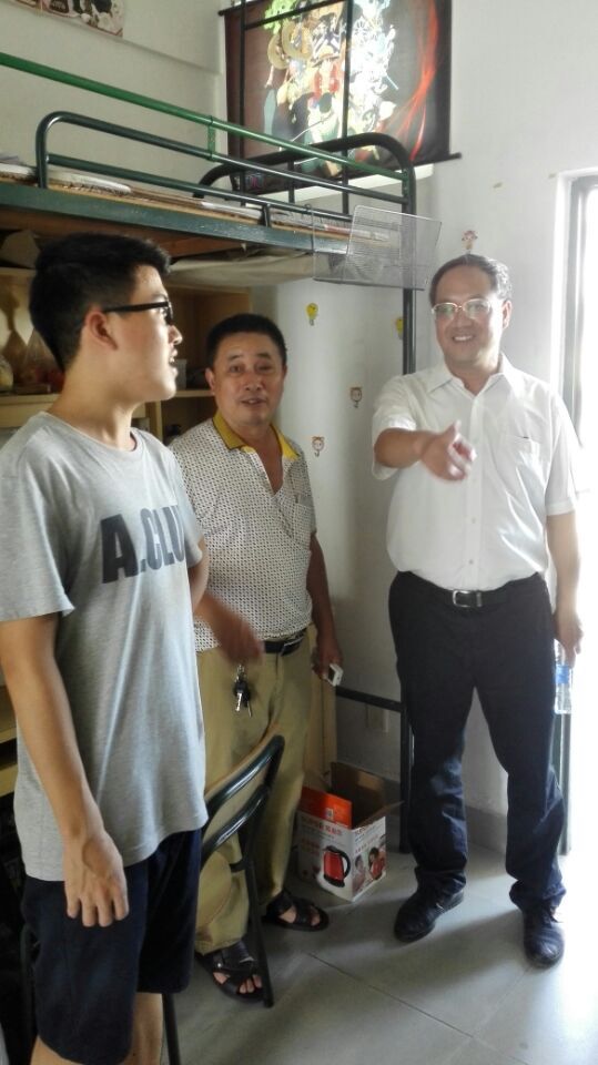 院领导首先听取了团委书记张志雄老师的迎新进展工作汇报,并对工作中可能出现的问题提出了改进意见。接着,何书记走访了新生宿舍,并与到校的新生及其家长进行了亲切的交流。何书记关切地询问新生是否适应以及宿舍存在的问题等等。看到学生公寓的部分家具门窗已经损坏,何书记要求院团委以及学生干部及时做好统一报修工作,并做好其他服务工作,为2016级新同学排忧解难。