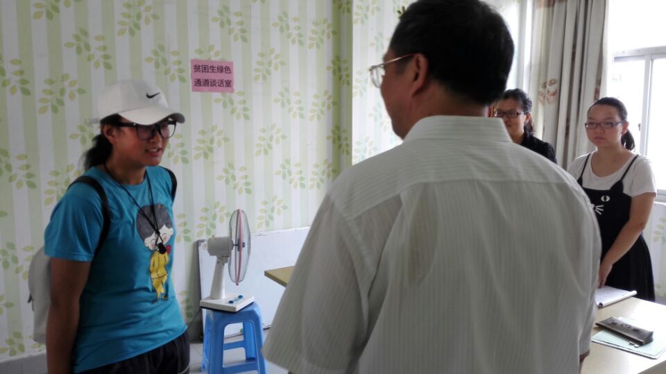 走到了学生公寓4号楼4楼贫困生“绿色通道”谈话室,何书记与一位来自西藏的贫困生进行了亲切的交谈,并勉励她克服困难,尽快适应大学生活,度过精彩的大学四年。