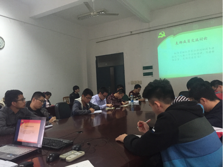 首先,支部书记曾庆美同志简单介绍了电气工程第二研究生党支部的基本情况,支部20名新老党员同志进行自我介绍和相互交流。紧接着,支部通过对习近平总书记《在纪念红军长征胜利80周年大会上的讲话》的学习,认识到当代弘扬长征精神的重要意义以及新的长征路对当代大学生的要求。同时,党员结合十八届六中全会主要会议精神——从严治党展开了深入讨论,与会党员同志认为,作为一名研究生党员,在生活中要时刻严格要求自己,积极服务奉献同学。在学术中,应保持严谨的态度以及持之以恒、不怕困难的决心,在行动中真正践行“两学一做”的“坚持根本宗旨,发挥党员作用”。
