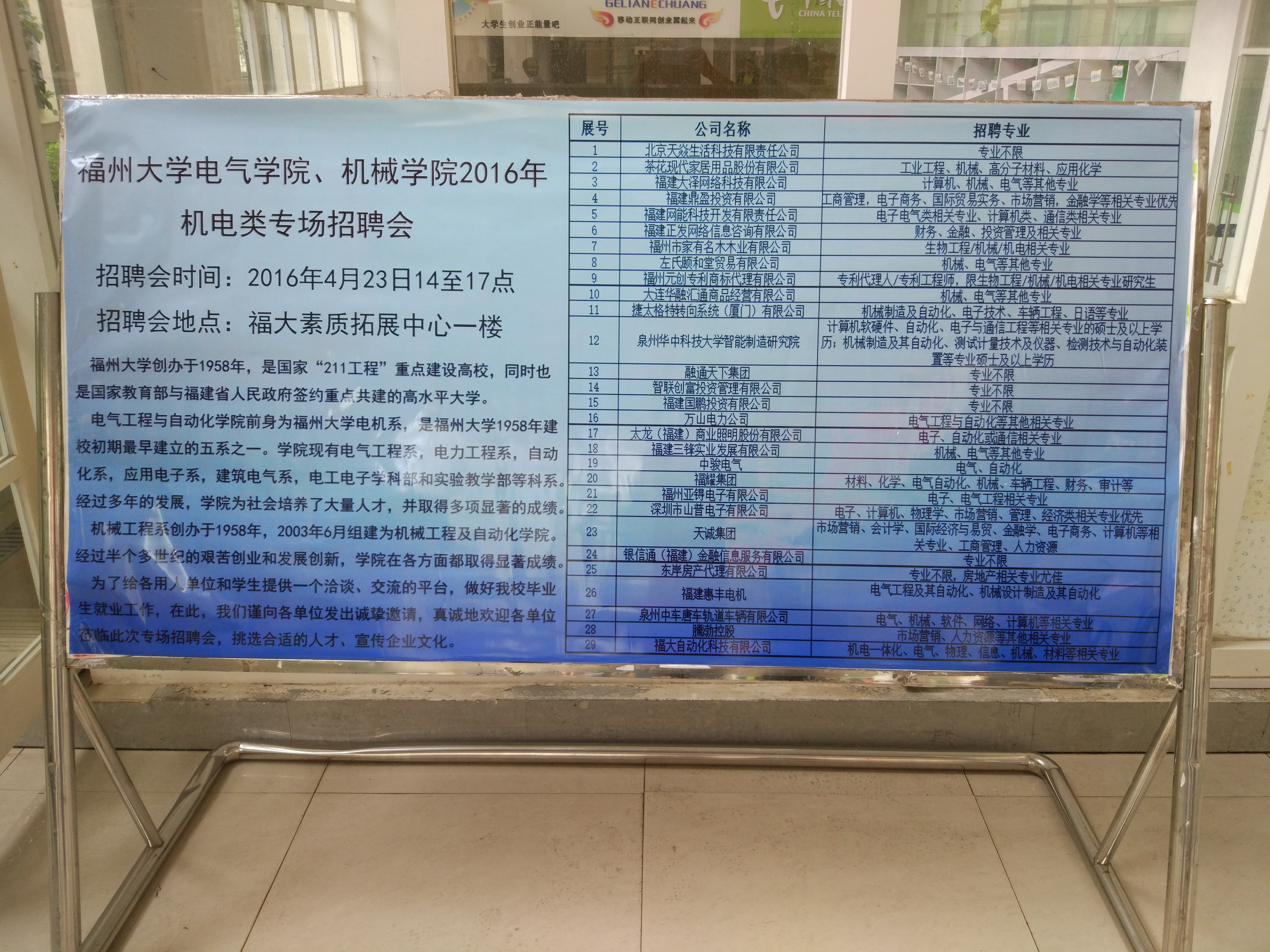 本次招聘会共邀请到福耀集团、中骏电气、惠丰电机、福大自动化科技有限公、泉州华中科大智能制造研究院、中车唐车轨道车辆有限公司等近30家机电类企业和相关单位参会。招聘岗位涉及电气、自动化、材料、电子类、通信类、机械、土木工程、会计、市场营销等多个专业,参会企业提供了众多岗位以广纳英才,本场招聘会吸引了偷拍视频