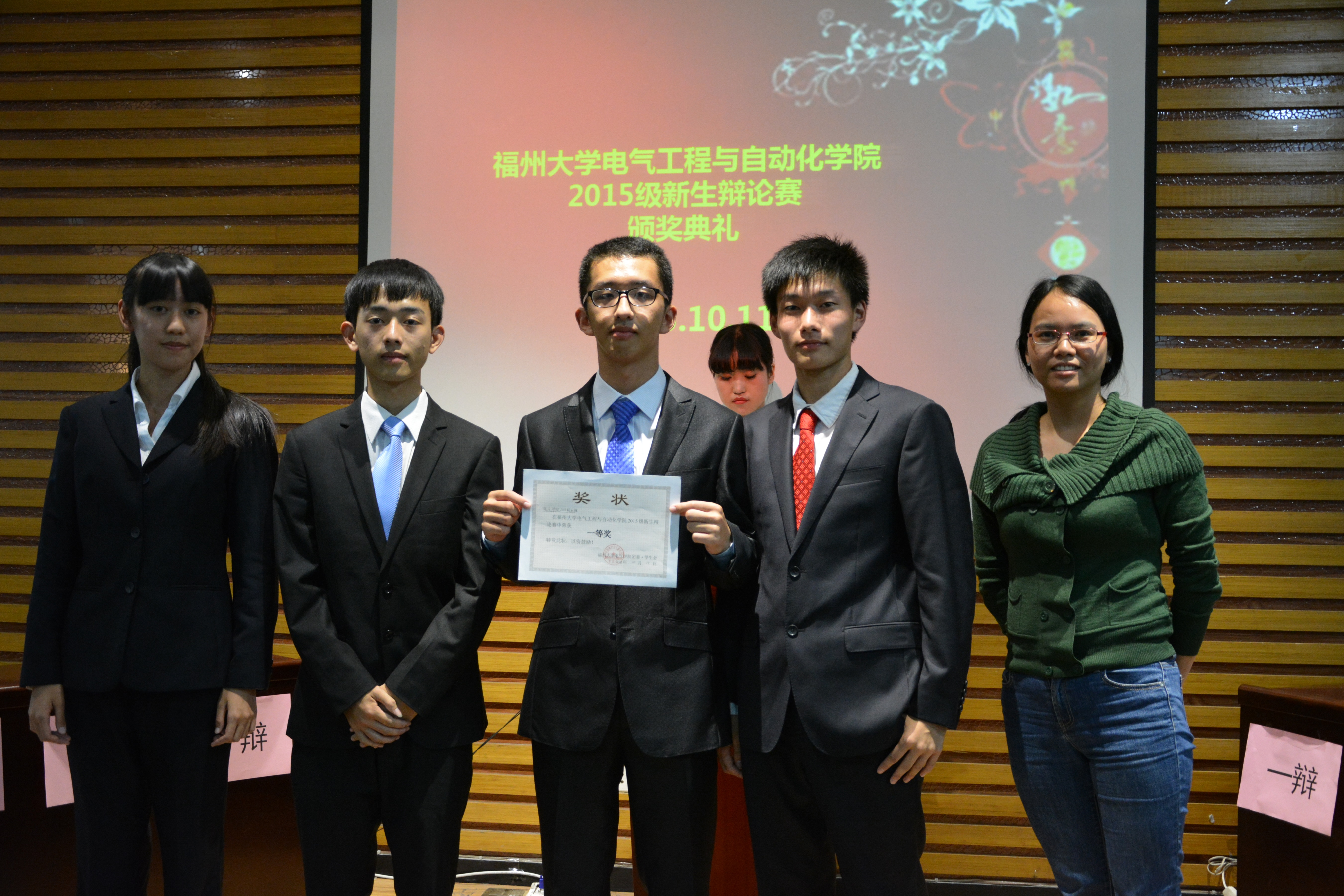 2015年10月11日晚7点,电气学院新生辩论赛决赛在新楚楼北230隆重举行。本次辩论赛由电气学院团委学生会主办,电气学院辩论队承办,比赛以“天灾与人祸哪个更可怕”为辩题。出席本次比赛的嘉宾评委有辅导员段小华,学生会主席邱陵腾,团委副书记祝文熹,副主席潘嘉辉、翁嘉晨、林泽鸿、曾泽宇等,并特别邀请了生工学院、人文学院与外院的辩论队队长担任评委。