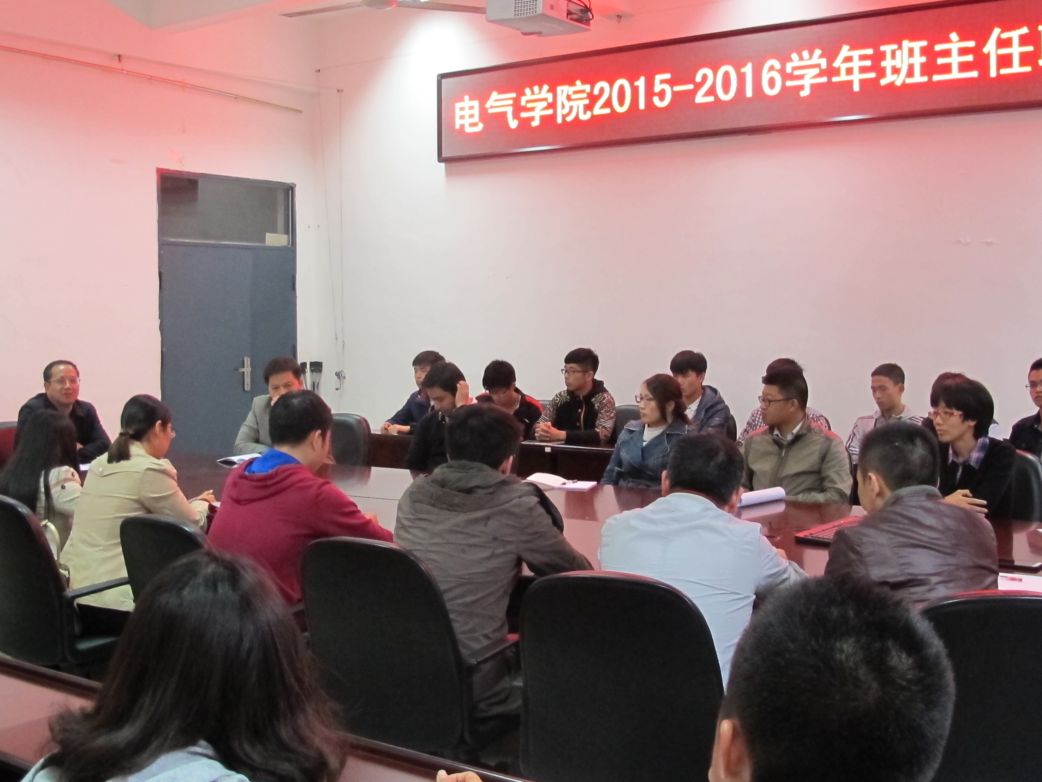 黄国辉副书记首先说明了电气学院原先的班主任制度和这次聘任班主任的原因和具体做法,随后,宣布了19个班级的聘任结果并介绍班主任和班长现场对接。