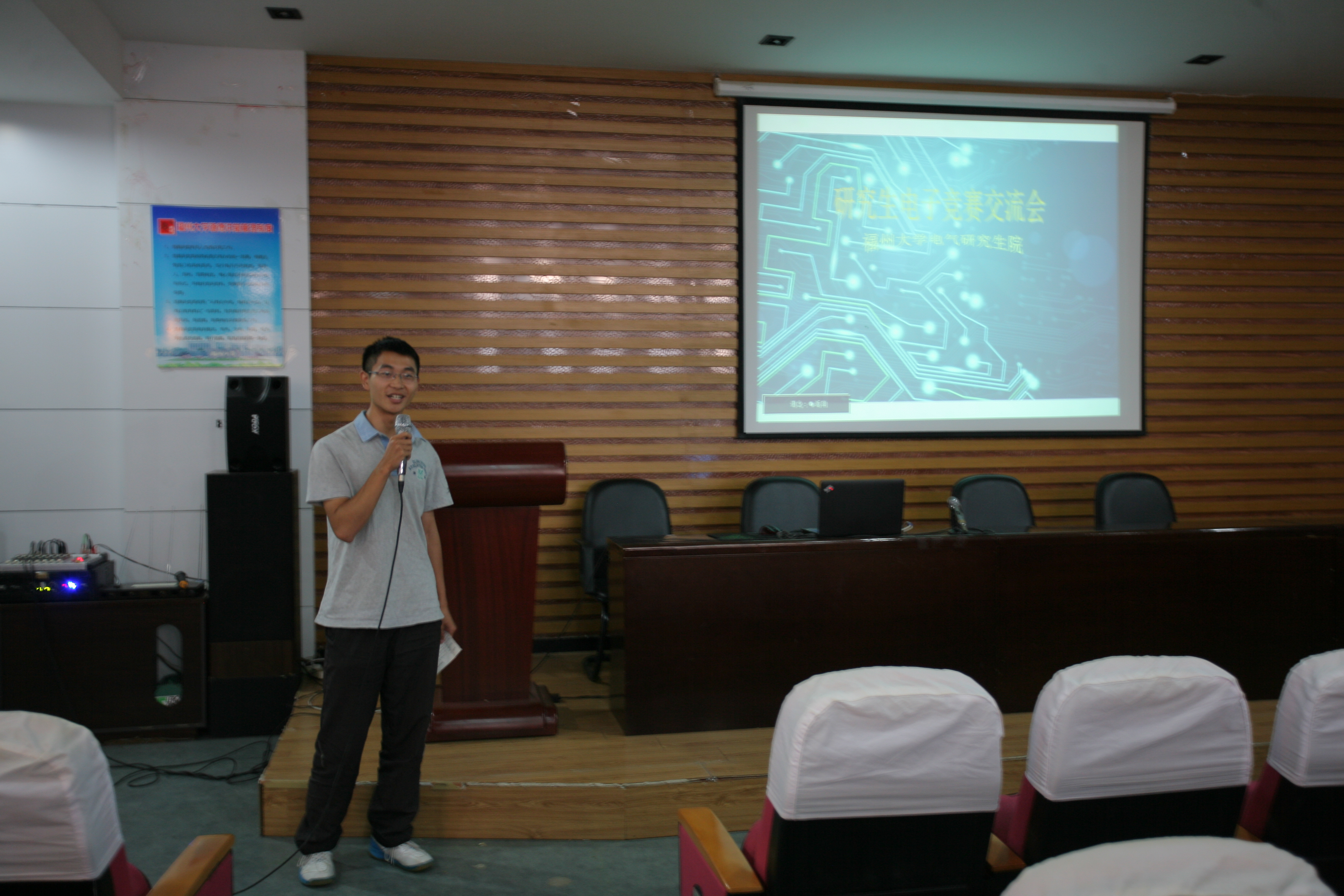 9月9日上午8点30分,电子设计竞赛参赛选手与新生交流会在电气学院新楚楼北230多功能厅举行,交流会的主持人是电气研会学术部部长柳百毅同学。曾经参加过研究生电子设计竞赛,并且获得了很好成绩的学长分别上台交流自己的参赛经历,并对新生提出的疑问进行了解答。交流会之后,研究生招生办王秦老师指导新生学习研究生手册,并就相关问题进行答疑。