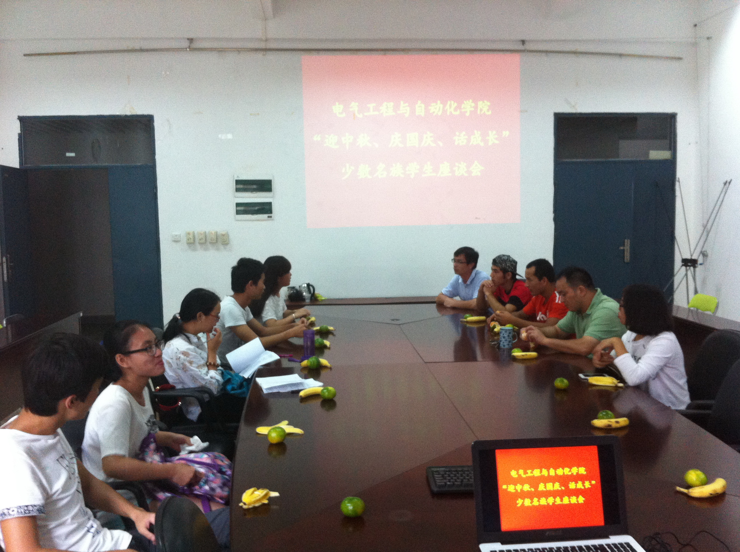 9月26日,电气学院“迎中秋 庆国庆 话成长”少数民族学生座谈会在新楚楼南212会议室举行。来自新疆维吾尔族、西藏藏族等10多个少数民族的学生参加了座谈会。座谈会由学院团委书记张志雄老师主持,团委副书记沈庆斌老师、辅导员尹万东老师与段小华老师也参加座谈会。