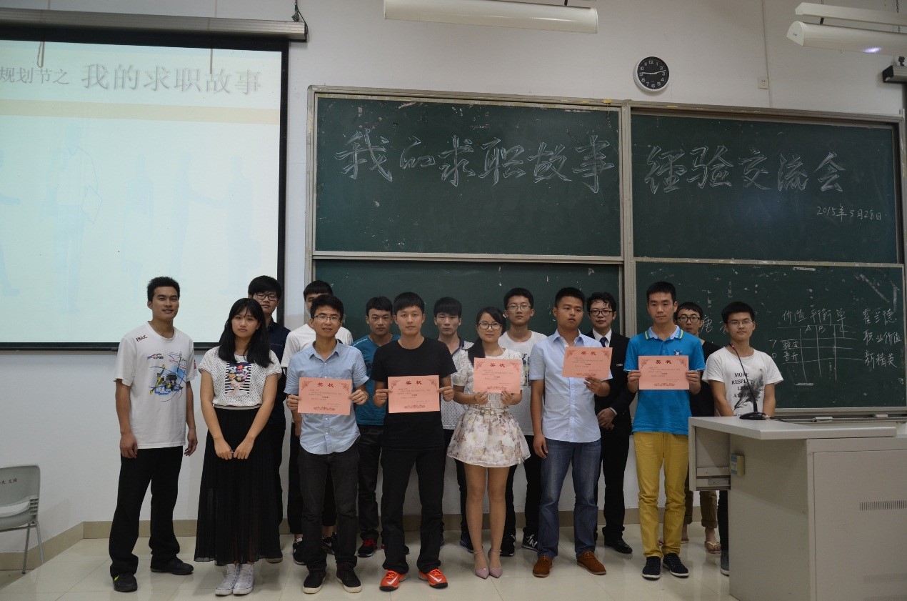 第十届职业规划节之我的求职故事决赛在文四101举行。据悉,本次求职故事比赛历时一个多月,最终评选出十份优秀作品授予“十佳求职故事“称号,其中电气学院有四位同学的作品入围,他们的作者分别是贾宏强、江华健、柳松、胡伟鹏。当晚的决赛即由十佳求职故事获得者进行求职经验分享。