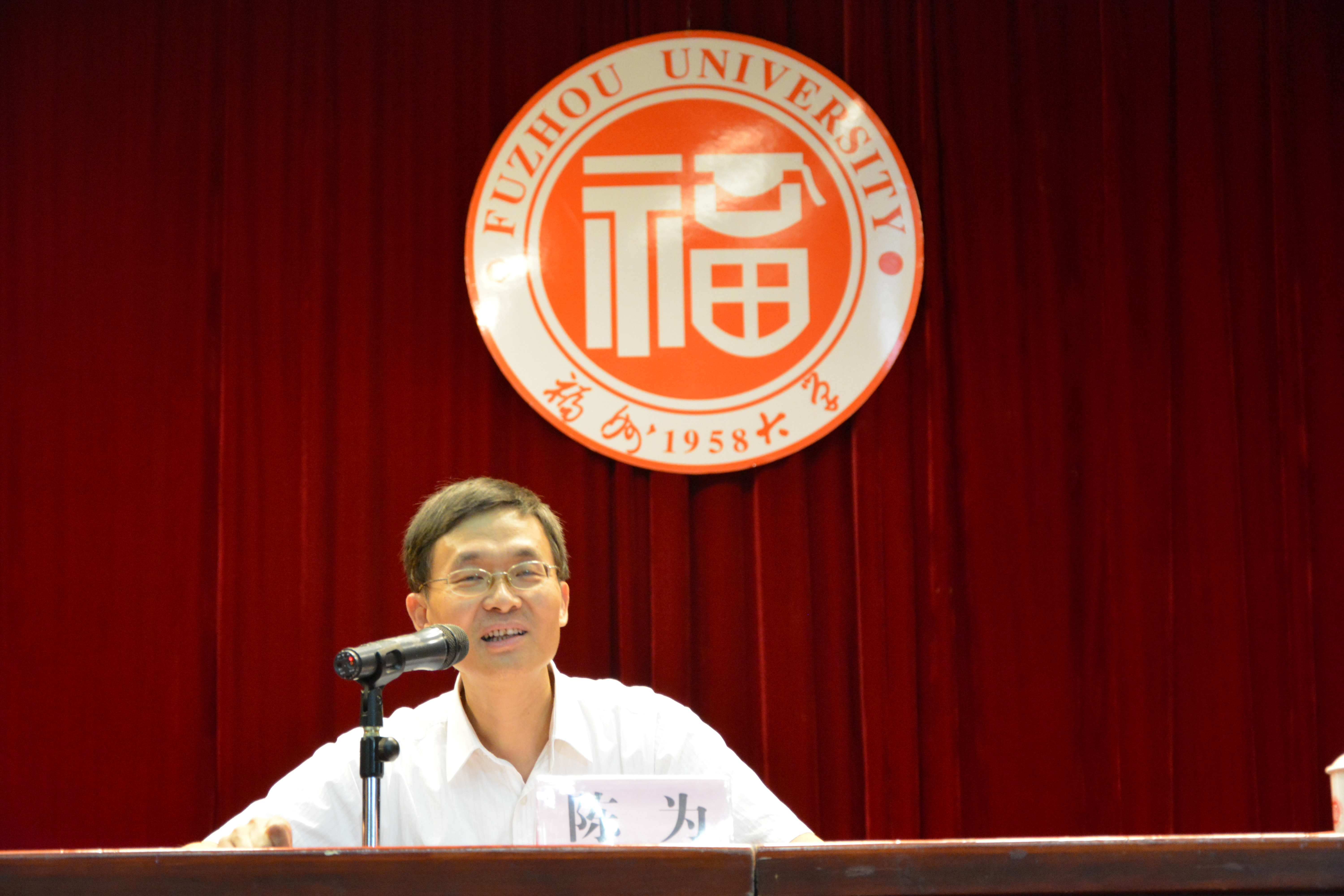 1958年建校初期最早建立的五个系之一,与省内的各高校相比具有更悠久的历史及更深厚的师资队伍。其次,陈教授结合自身的求学经历就学生所关心的专业选择强调同学们专业选择要与自己的兴趣爱好、学科行业发展前景结合起来,同时要养成热爱学习、自主学习、自主成才的习惯,形成正确的学习观与成才观。步入大学对于新生而言应该是全新的挑战,而不应该像高中所说的那样而有所松懈。最后,陈为院长对2015级新生提出了三点希望:一是希望同学们用于尝试,敢于挑战,努力培养自主选择的能力和胆识,让自己的心智不断的成熟;二是希望同学培养积极乐观阳光的心态,尊重他人,与人共赢;三是希望同学好好把握大学相对自主的学习时光,系统的学习掌握专业方面的知识,勇攀科学高峰。陈为院长的报告风趣生动,旁征博引,为新生同学们打开了通向知识殿堂、认识大学世界的大门,赢得同学们的阵阵热烈掌声。