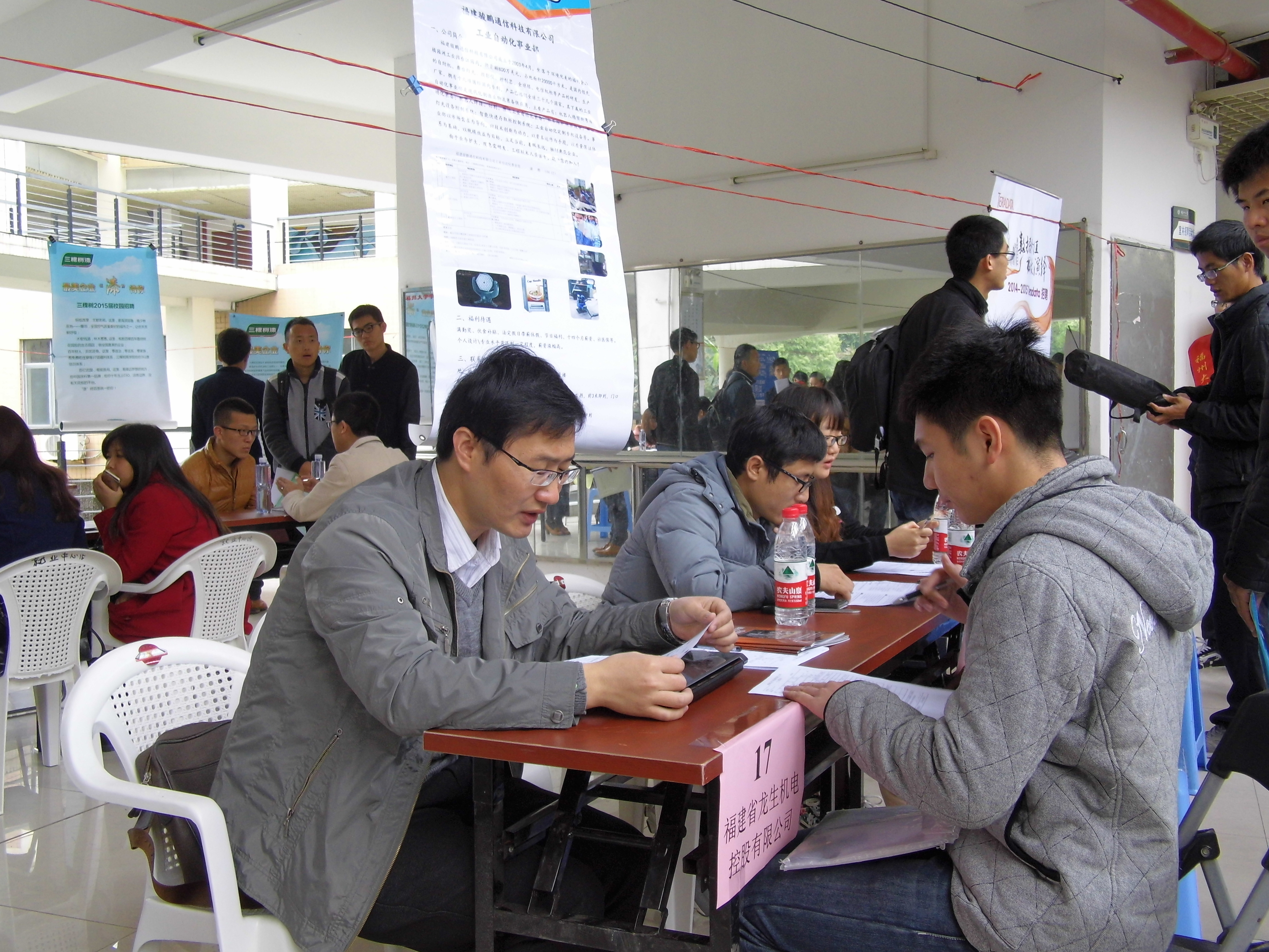此次招聘会有福建Teradata、大唐抚州发电厂等三十家国内外知名企业参展,三十家企业的招聘人员有序坐在安排好的位置上,同学们结合自己的专业、职业发展、兴趣爱好等先是询问了相关工作要求、薪资待遇、社会保障等相关情况,招聘人员针对毕业生提出来的工作问题作了全面细致的解答,随后,同学们再进一步咨询了晋升途径及晋升空间等具体情况,最后投递个人简历。在面试中,许多企业不仅注重应聘者在校成绩,也询问了应聘者是否有过实习经历。招聘会过程中,我们随机采访了一位求职者,询问他在此次活动中最大的感受,他表示很后悔没有好好学习,以至于在招聘人员询问他的成绩时十分尴尬。在三个小时的紧张面试后,招聘会终于圆满结束。