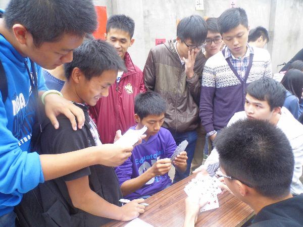 次楼层斗地主通过初赛从各楼层选出了六名积分领先的选手参加复赛,晋级的选手将参加决赛,决出冠亚季军,而夺得冠亚季军的三名选手将分别荣获“帝王”“丞相”“巡抚”的称号。经过多轮精彩的较量和智慧的碰撞,在总决赛的最后一局中,林荔枚同学抓住两位农民的一次配合失误,甩出最后一手牌后高举双臂大呼胜利,周围的观众也欢呼不断,大喊过瘾,而被拉下神坛的江声锋同学显然还沉浸在牌局中,过了一会儿才意识到比赛已经结束。大赛最终决出了前三名,他们分别是:冠军林荔枚、亚军江声锋、季军林剑平。工作人员进行了简单的颁奖仪式,期间笑点不断,观众也毫不吝惜自己的掌声,斗地主比赛就在这样欢快的氛围中落下帷幕。