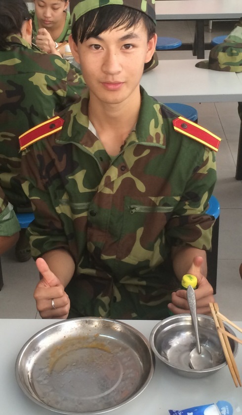一粥一饭当思来之不易,半丝半缕恒念物力维艰。对于2014级的新生而言军训不仅仅局限于他们在操场上标准的军姿,更表现在他们在日常生活中严明的军纪。“节约粮食,光盘纪律”——偷拍视频