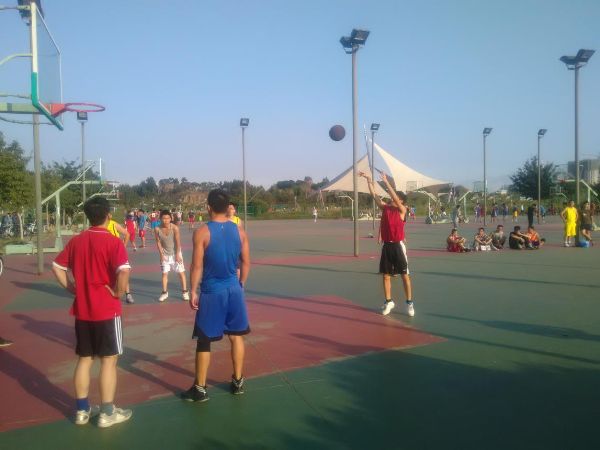 三区篮球场A场举行了一场研究生与老师间篮球友谊赛。