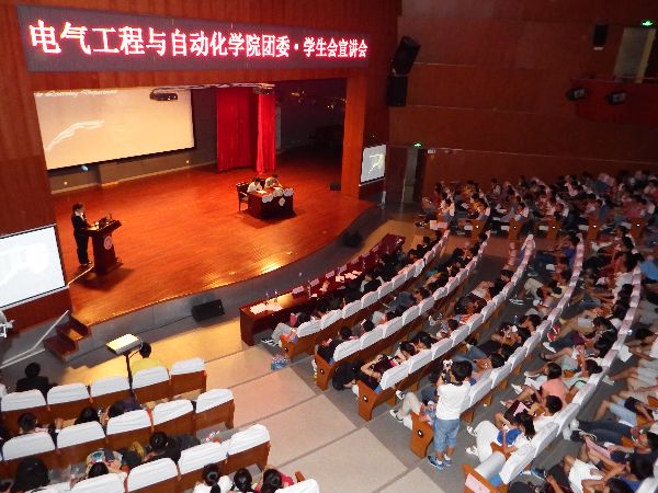 图书馆博学厅举办了一年一度的电气学院团委·学生会的纳新宣讲会,该活动是由电气学院团委·学生会主办,到场的主要是电气学院团委·学生会主席团成员,2013级电气学院团委·学生会干部及2014级新生。