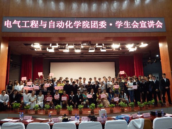 活动首先以一段精彩的学生会18个部门的简介视频作开始,随后,由电气学院团委·学生会主席刘伟发言,概述了学生会的组成及辉煌历程,接着进入正题,电气学院·团委学生会六大中心,共十八个部门的代表按顺序依次上台宣讲,风格或幽默,或深沉,或激情,比如职协,楼委会,女生部,学习部等部门就充分发扬了娱乐精神,让新生们的笑声此起彼伏,而秘书处,辩论队等部门却以深情的演讲打动了在场的听众,实践部,科技部,体育部等部门则通过慨激昂的论说震撼着台下的人们,除此之外,文化部艺术团的钢琴、提琴和舞蹈表演亦是一大亮点,博得了众人的喝彩。宣讲会最后,2013级学生会成员集体合照,本次活动圆满结束。