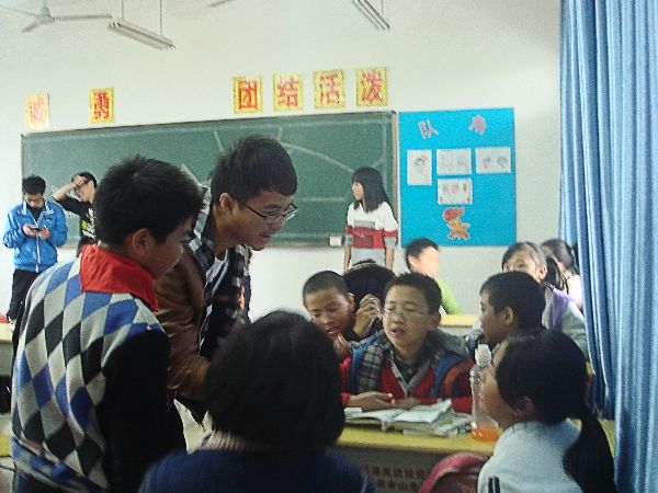 下午15点45分,志愿者们刚刚到达亚周小学就有学生跑过来高兴地叫着“老师”,并开始与志愿者玩耍。15点55分,上课铃声响起,同学们都回到了教室,志愿者们开始了对感恩节的介绍。同学们积极与志愿者互动,丝毫不显拘谨。而后,《感恩的心》音乐响起,志愿者们教给同学们这首歌的手语。有的志愿者更是走到同学们中间进行“专门指导”。同学们积极学习、比赛,并收到了志愿者分发的奖品,喜悦之情溢于言表。此时课堂气氛融洽,同学们热情高涨,又与志愿者开始聊天、游戏。同学们告诉志愿者:今天这次活动让自己更加理解感恩。