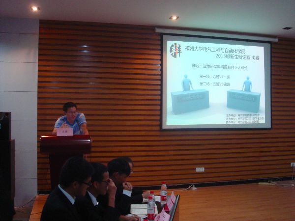 2013年9月27日19点,电气学院在新楚楼北230隆重举办了2013级新生辩论决赛。本次辩论赛由电气学院团委学生会主办,2012级学生分会承办。出席本次活动的嘉宾有2013级辅导员邓萧老师,电气学院团委学生会副主席梁邱同学、谢泽城同学等。