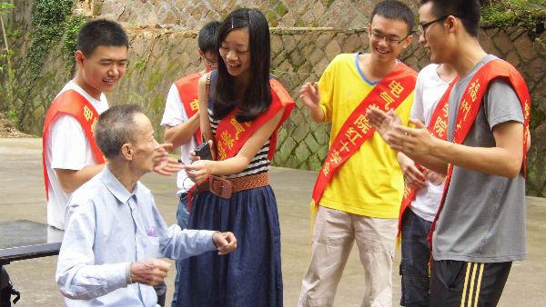 上午9时整,同学们乘车顺利抵达福州市五福缘敬老院。同学们首先和院里的老人拉起了家常,拉近了和老人们的关系。紧接着同学们为老人们献上了准备好的歌曲、舞蹈和朗诵节目。在欢乐的气氛中,老人们的脸上露出了久违的笑容。最后同学们与老人们合影,并在依依不舍的告别声中结束了本次活动。