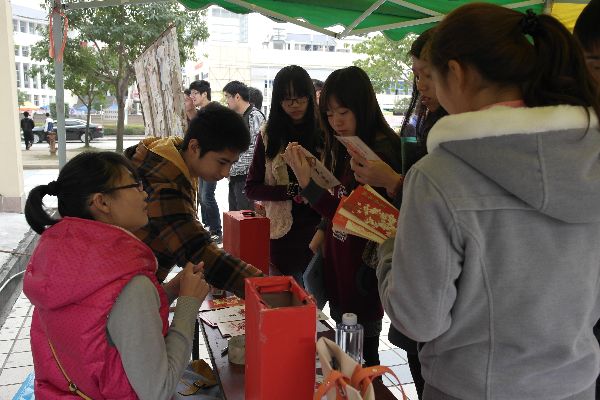 活动期间,同学们成群结队地前来观看。他们在欣赏展示作品的期间,女生部的部员们细致地解说本次活动的意义,并进行了投票方式的说明。各学院的同学们都十分积极地参与了本次投票,投票箱里满满当当。同时,工作人员还向投票的同学分发明信片,让每位参与活动的同学获得领取明信片并现场填写感恩祝福的机会。在大家的共同努力下,活动于下午4点30分圆满结束。