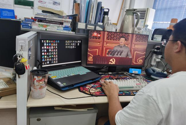 本次收看庆祝大会活动采取集中观看与班级自发组织收看相结合。2021年7月1日上午8:00,偷拍视频