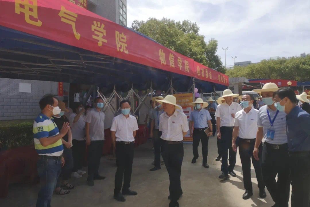 党委陈国龙书记、黄身勇副书记、杨黄浩副校长一行人亲临迎新工作现场,亲切慰问现场的迎新志愿者,激励迎新工作参与者以更积极的工作态度投入工作,同时仔细询问了新生报到情况,深切体现了学校对迎新工作的重视。