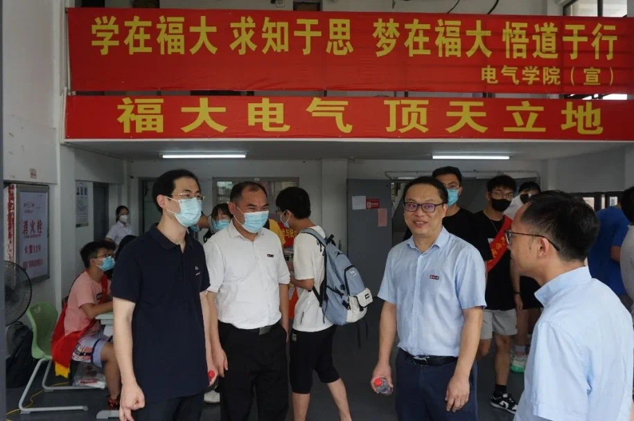 此外,电气学院党委书记潘志辉老师、党委副书记鲍星华老师、副院长邵振国教授、副院长王武教授等领导老师也时刻关心新生报到的情况,并去到现场向迎新工作人员和新生表示关切的问候。领导老师们深入走访新生宿舍,与新生们亲切交谈,了解他们的毕业学校与家乡,询问他们的切身感受,并嘱咐他们有需要时及时进行反馈沟通。老师与新生们热情交流,欢若平生,在问候和交流中凸显电气学院深切的人文关怀和“以生为本”的工作理念。