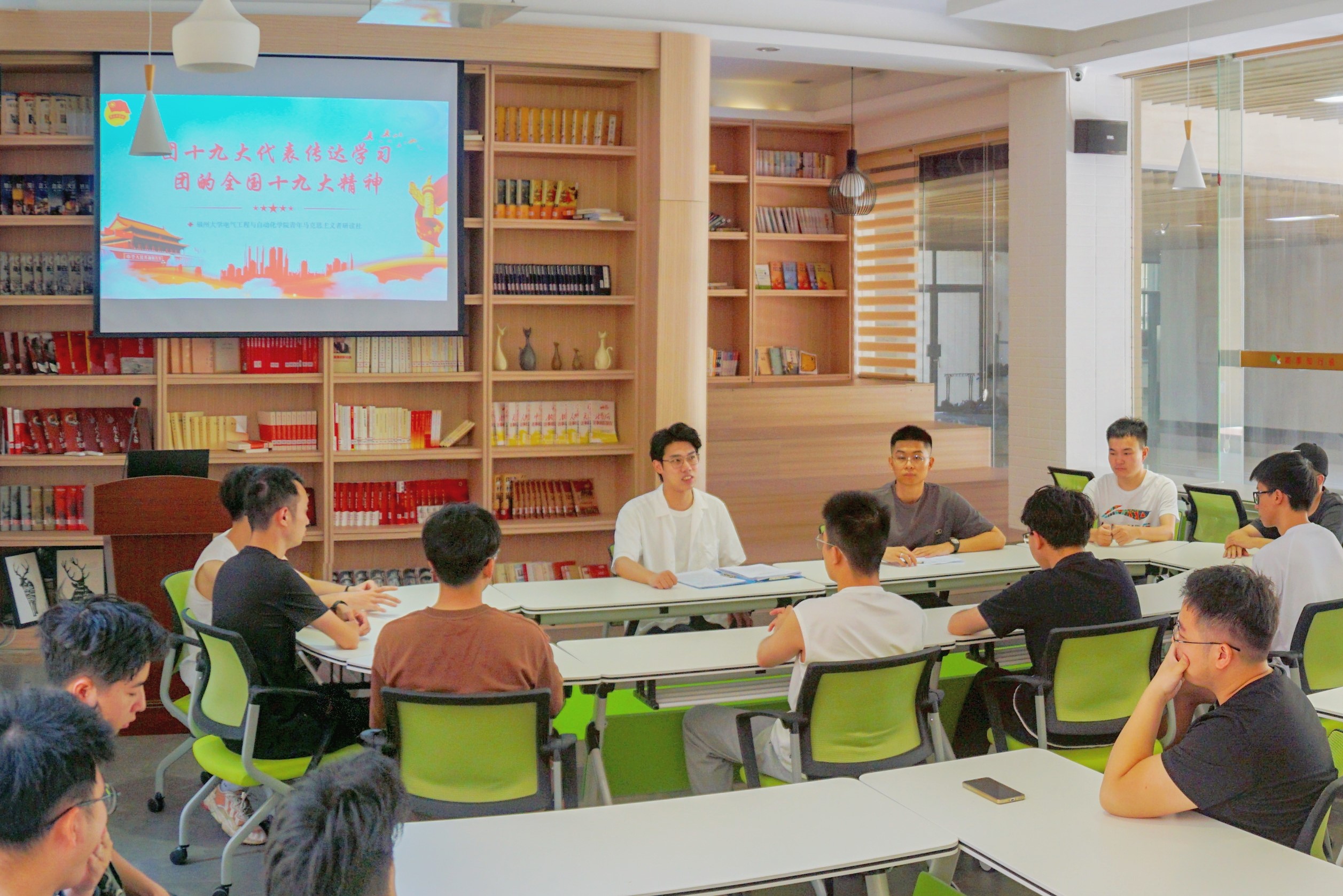 ▲图为真嘉捷代表向与会团员传达团十九大精神
