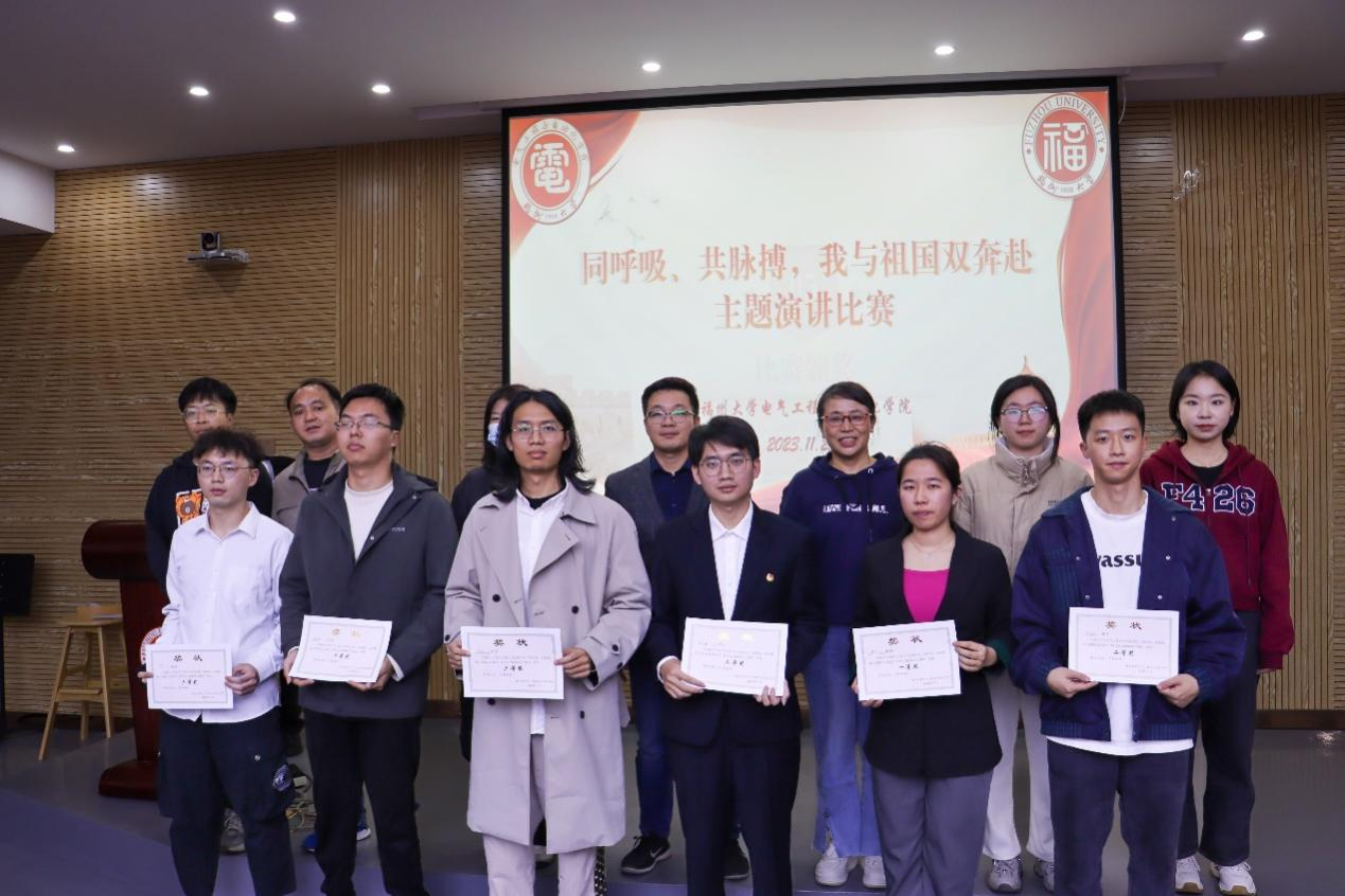 学生爱国荣校情怀,弘扬爱国主义精神,2023年11月25日下午,电气学院于新楚楼北230举办“同呼吸、共脉搏,我与祖国双奔赴”主题演讲比赛。院团委书记李金土,辅导员许海燕、尹万东、唐龙翰、黄莹莹、陶可佳和卢煜出席了演讲比赛。