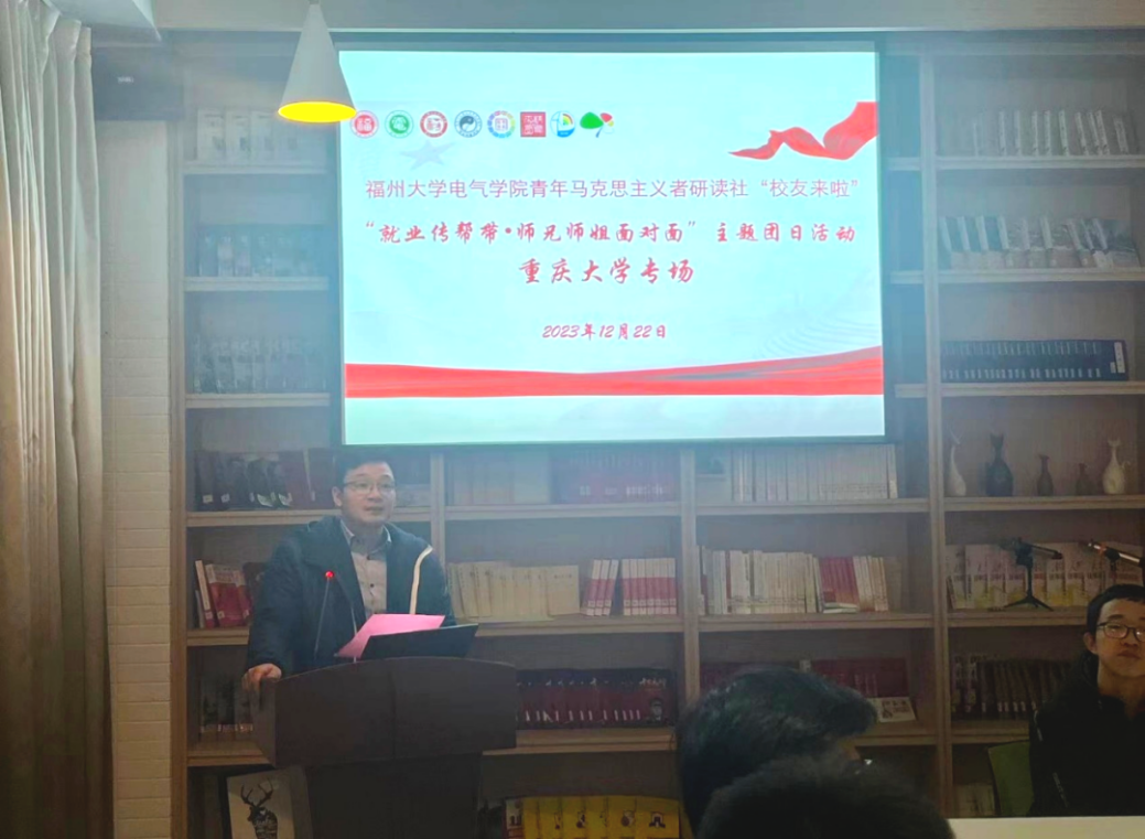 于12月22日晚在新楚楼一楼青年马克思主义研读社举行“就业传帮带·师兄师姐面对面”主题团日活动。本次活动邀请到了现就读于重庆大学电气学院攻读博士学位并担任学院博士研究生兼职辅导员的夏圣垣学长和现就读于重庆大学攻读硕士学位的郭宸杰学长。活动由院团委书记李金土老师主持。