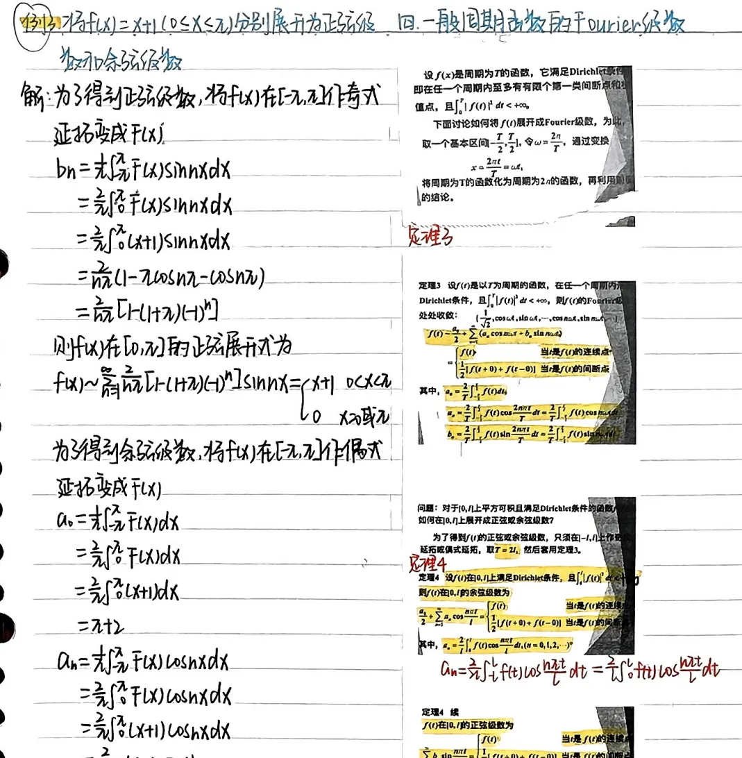 林昱瑶同学的笔记包含了详细的解释和推导过程,使得高数的原理和计算方法变得非常简单。并且,她的笔记还提供了丰富的例题,这些例题具有挑战性,帮助读者深入理解傅里叶级数的应用。跟随她的笔记步骤,读者可以轻松地掌握傅里叶级数的概念和计算技巧。