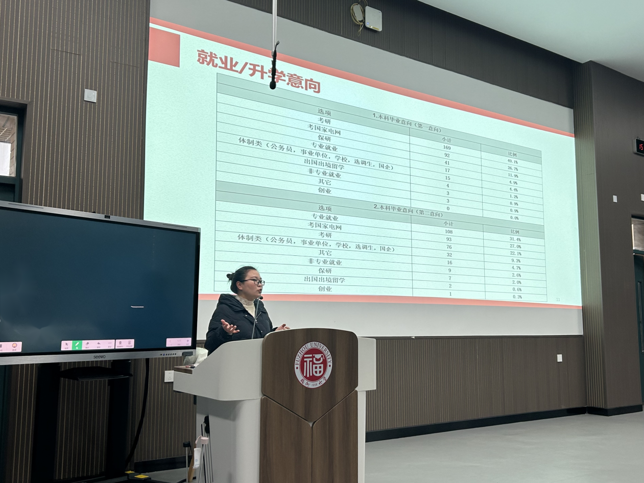 对于2021级本科生而言,2024年无疑是充满挑战与机遇的一年,随着毕业季的临近,升学与就业的问题成为了同学们关注的焦点。在大会的第二阶段,梁艳华老师为同学们带来了宝贵的建议与启示。梁艳华老师首先对2021级本科生的就业和升学意向进行了鞭辟入里的分析,同时详细解读了学院近年来应届毕业生的考研和就业状况。她强调了加强职业生涯规划的重要性,鼓励同学们要迅速确定个人发展方向,并将之付诸实践,通过实际行动去不断调整和完善自己的职业规划。针对保研、考研、就业、出国、考公考编等不同目标选择,梁艳华老师也给出了具体的指导建议,她希望同学们能够根据自己的实际情况和兴趣爱好,在大学生活关键的一学期中制定个性化的学习计划,不断提升自己的综合素质和专业技能。