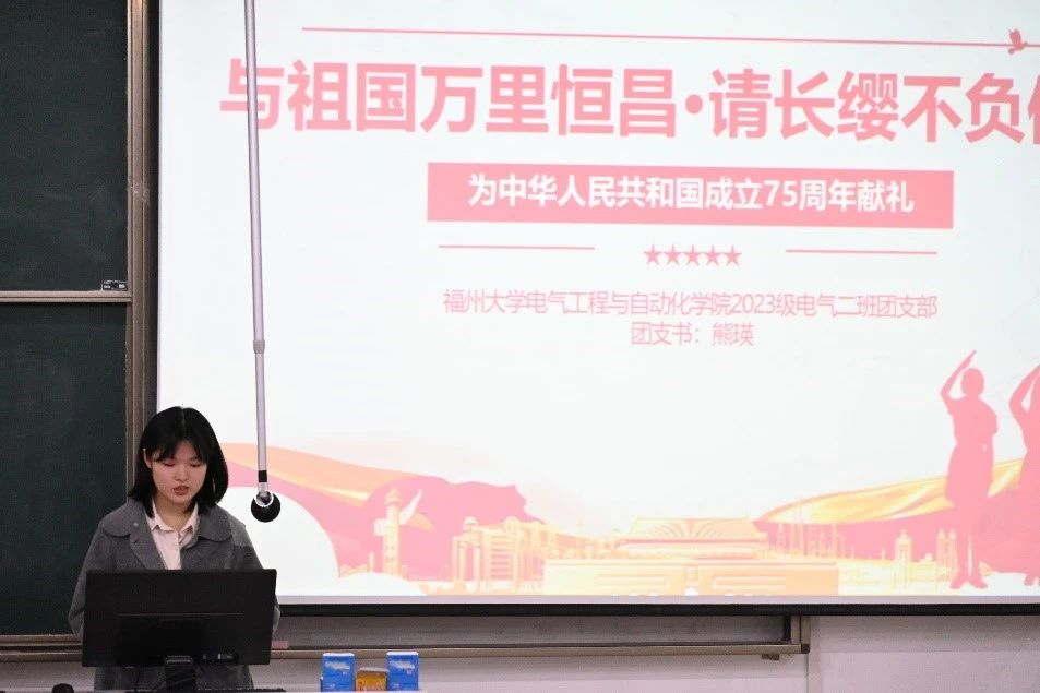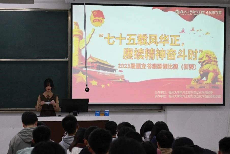 团委组织部于铜盘校区B110开展了“七十五载风华正,赓续精神奋斗时” 2024年电气学院团支书微团课比赛初赛,2023级辅导员何慧老师、赖先民老师、电气学院学生团委副书记(学生)徐嫣孺、电气学院团委组织部主要负责人罗令及来自各班级的百名观众共同参与。