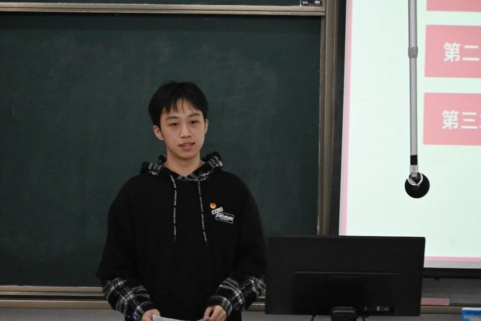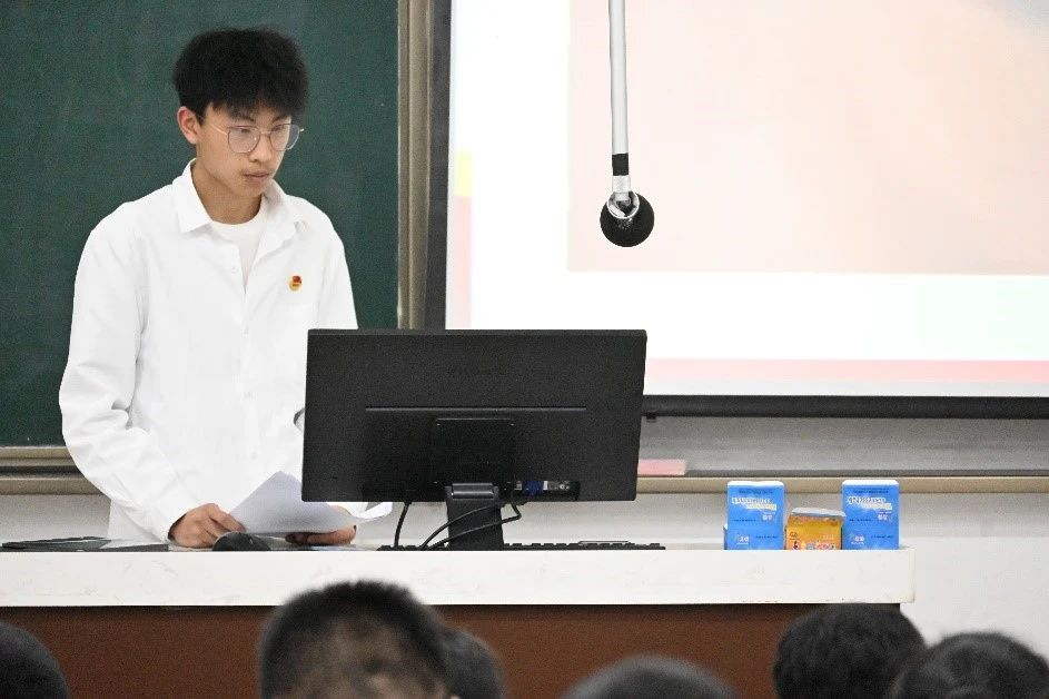 在主持人介绍活动背景和比赛规则后,一号选手张小柯从四个方面展开团课讲解,明确了共青团员们应在政治思想上同党中央保持高度一致,呼吁电气青年们踔厉奋发,笃行不怠,一同建设未来风华。