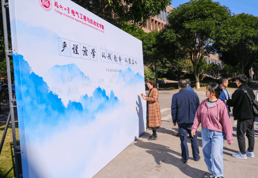 学术诚信签名活动中,电气学院院长许志红教授、党委副书记钟钛申、团委书记李金土、研究生辅导员许海燕、14位2023年研究生国家奖学金获得者等师生在学术诚信墙上签名倡议。学术签名墙的签名表达了他们遵守学术诚信的决心,也是他们向广大师生发出的有力倡议。签名墙不仅是一面宣扬学术诚信的旗帜,更是一个充满榜样力量的宣誓,激励着电气学子在求学之路上坚守诚信、远离造假。